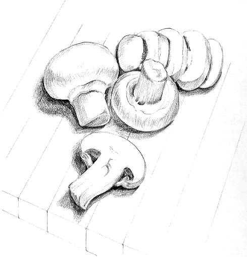 or chops with thick slabs of mushrooms sautéed in butter and freshly ground pepper.
